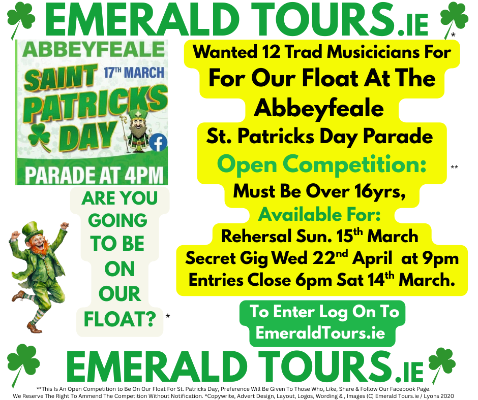 A. We're Looking For 12 Trad Musicians For Our Float In The